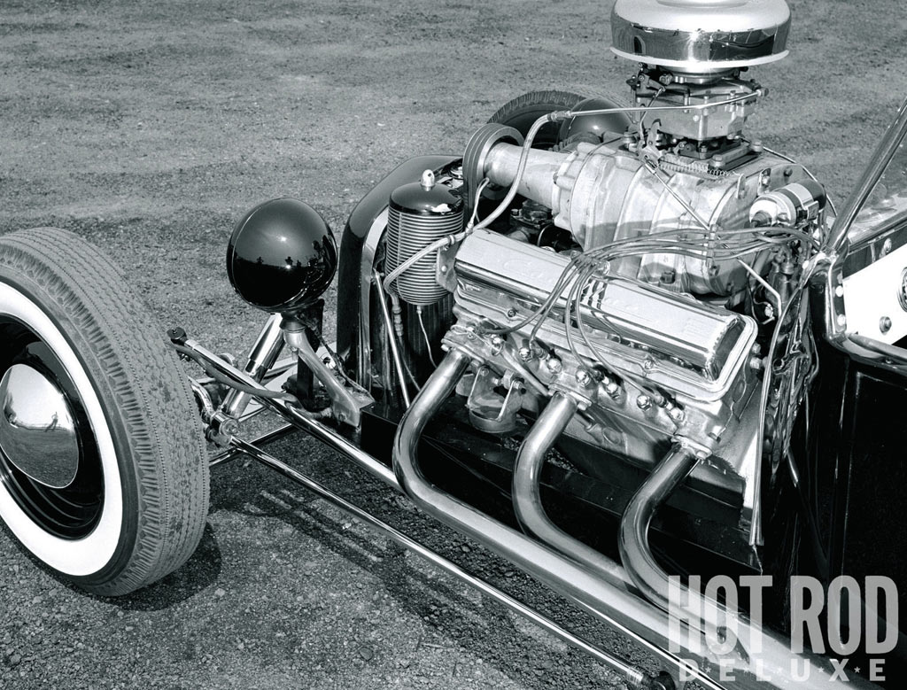 Sercem Forda stał się masywny silnik z Cadillaca z 1952 roku należącego do rodziców Norma. Oczywiście taki nabój wymaga odpowiedniego naostrzenia. W tym wypadku kompresor usadowiony został na aftermarketowym kolektorze dolotowym, paliwo z powietrzem mieszało się w czterogardzielowym gaźniku Rochester. Całość zwieńczył czarny lakier na karoserii i czerwona tapicerka od Tonyego Nancy.