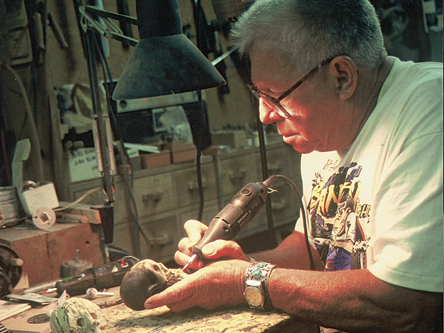 Wyrzucenie byłoby marnotrawstwem, dlatego zniszczoną czaszkę ucharakteryzował wyciekającą krwią i wylewającym się mózgiem. Od góry całość zwieńczył nakrętką na pręcie przechodzącym przez główkę. Tak narodziły się makabryczne czaszki Grabowskiego, które później wykonywał z drewna. Robił je przez długie lata ku uciesze licznych kolekcjonerów, którzy używali ich nie tylko w samochodach, ale także do wystroju wnętrz.